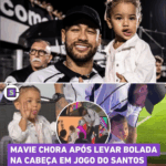 Mavie, filha de Neymar, é atingida por bola em jogo do Santos e chora nos braços do pai