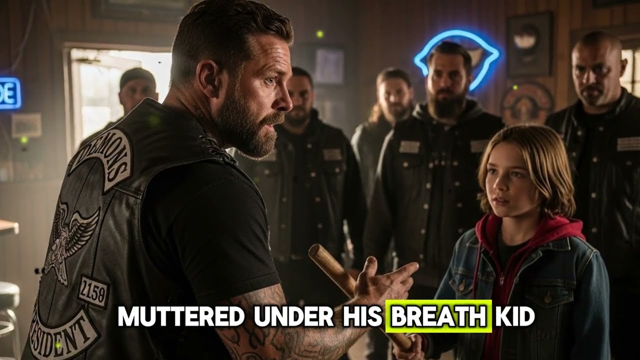 No silêncio abafado de um bar de motoqueiros, onde o cheiro de couro e combustível parecia impregnado nas paredes, algo inesperado aconteceu. O som dos passos sobre o chão de madeira parou. O que se viu então foi uma cena que jamais seria esquecida por aqueles homens endurecidos pelo tempo e pelas ruas: um menino pequeno, vestido com uma jaqueta jeans larga demais e um moletom vermelho vibrante, segurava um pedaço de madeira com as mãos trêmulas. Ele não estava ali para causar problemas; estava ali em busca da verdade.